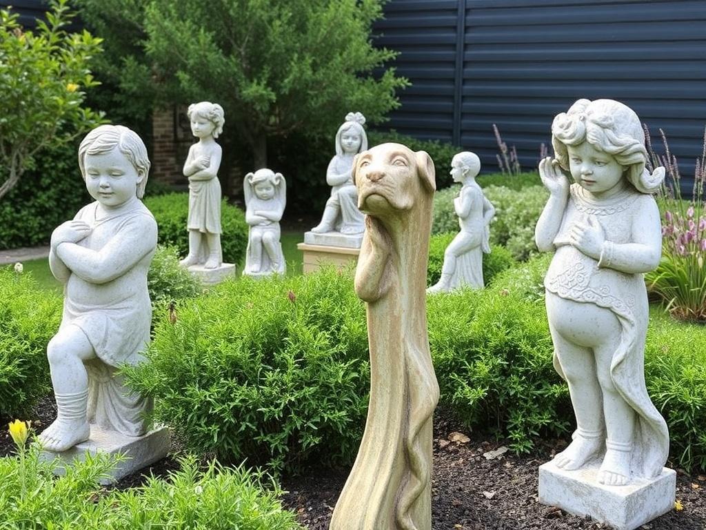 Определитесь с размерами и темой, которая гармонирует с вашим садом. Малые фигуры вписываются в дорожки и клумбы, средние создают акценты у беседки, крупные становятся центральной точкой композиции.